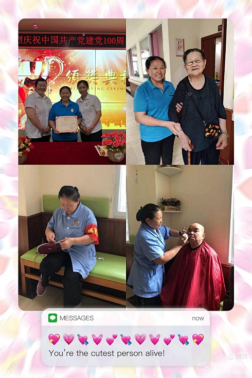 “銅牌護理員”獲得者,重慶市市級示范養老院一一潼南區桂林壽而康社區養老服務(wù)中心,護理員韓玉方同志日常工作。