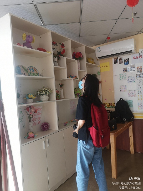 2021年7月2日,成都《孝行天下》雜志社主編黃銀燕女士,來(lái)到壽而康馨悅園,參觀(guān)、感受認知障礙老人的一天日常。