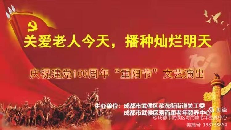 金秋十月,丹桂飄香,我們迎來(lái)了又一個(gè)九九重陽(yáng)節,迎來(lái)了老人們自己的節日;尊老、敬老、愛(ài)老是我們中華民族傳統的美德,關(guān)心老年人、愛(ài)護老年人、保護老年人是我們全社會(huì )的共同責任。壽而康養老服務(wù)有限公司董事長(cháng)特別安排下屬機構,為老人們隆重開(kāi)展“慶祝重陽(yáng)節活動(dòng)”;成都武侯區壽而康老年頤養中心,于2021年10月10日下午與武侯區漿洗街關(guān)工委共同舉辦聯(lián)歡活動(dòng),載歌載舞給老人們帶來(lái)了歡樂(lè )。