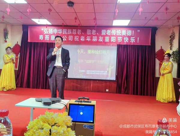 壽而康成都運營(yíng)中心任總監代表董事長(cháng)、代表壽而康全體員工給老人們送上了節日的祝福。
