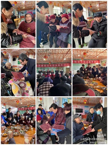 公司曹野董事長(cháng)委派公司副總裁、董事長(cháng)助理、督導室主任、院務(wù)總監去各院給老人拜年,給老人們送上新年禮物:帽子、圍巾、羊毛襪、手套等溫暖品,恭祝大家新春快樂(lè )!身體健康!平安幸福!闔家歡樂(lè )!