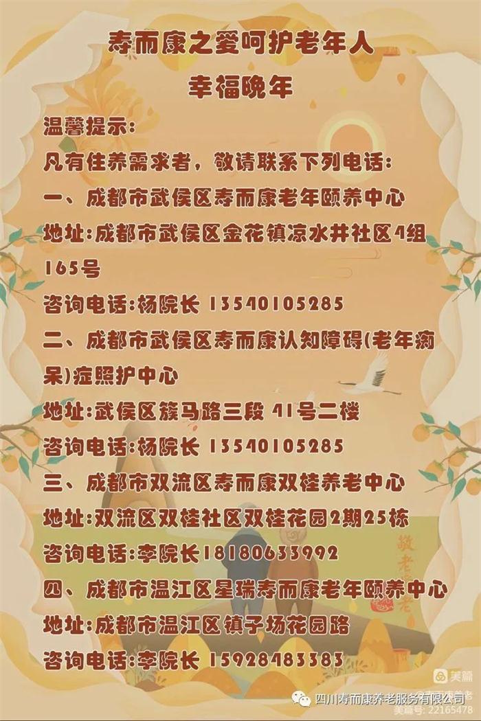 歡迎光四川壽而康養老服務(wù)有限公司官方網(wǎng)站!